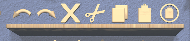 Certain actions may not be enabled due to the current application state. A 3D icon for an enabled action will appear with the regular light woodgrain texture. An icon for a disabled action will be dark instead. 3D icons that represent enabled toggle actions will be colored green when the toggle is in the “on” state and regular woodgrain when in the “off” state.