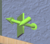 Actions to choose the current general tool are available as 3D icons on the second shelf from the bottom on the left wall of the work area. Clicking on any of these icons attaches the corresponding general tool to the primary selection. Note that most of these tools affect all secondary selections in addition to the primary model.