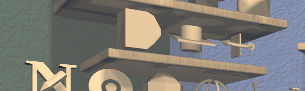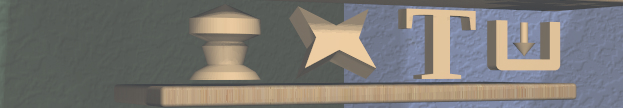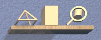 Clicking on the 3D icon on the top shelf on the left wall applies the toggle action if available. This icon changes shape to reflect what the toggle will do. It will be one of the icons shown here, from left to right: