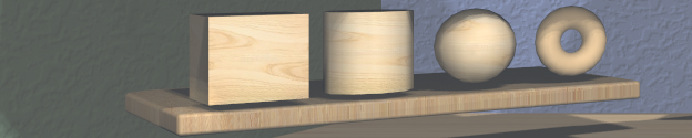Model Creation actions are all available as 3D icons on the two shelves on the bottom of the left wall of the work area. Each creates a model of a specific type
