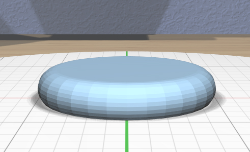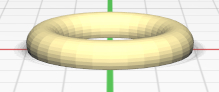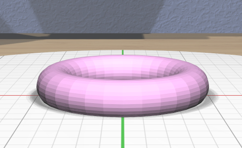 A Torus model represents a torus that by default has an outer diameter of 4 units and an inner diameter (height) of .8 units. Its axis of symmetry is aligned with the +Z (“up”) axis. The specialized Torus Tool allows you to change the outer and inner diameters independently.