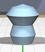 A RevSurf model represents a closed surface of revolution created by rotating a 2D profile about the Z (“up”) axis. The default profile consists of 3 points (the minimum allowed) that forms a surface with the widest diameter of 4 units and a height of 4 units. The specialized Surface of Revolution Tool lets you edit the profile and also the sweep angle of the surface.