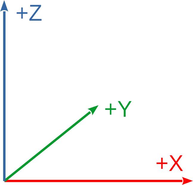 EasyMaker3D uses the same coordinate system that most 3D printing software uses: right-handed, with +X to the right, +Y away from the viewer, and +Z up. The top surface of the stage is at Z=0.