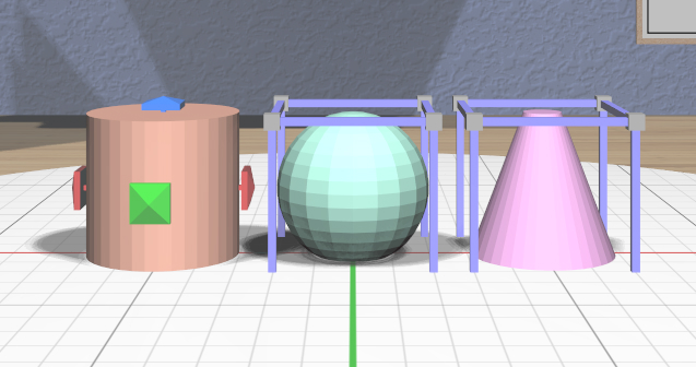 When more than one model is selected, the first selected model is known as the primary selection and all other selected models are the secondary selections. The current editing tool is attached to only the primary selection. All secondary selections are indicated with a noninteractive blue wireframe box as shown here. Some tools and actions treat the primary and secondary selections differently.