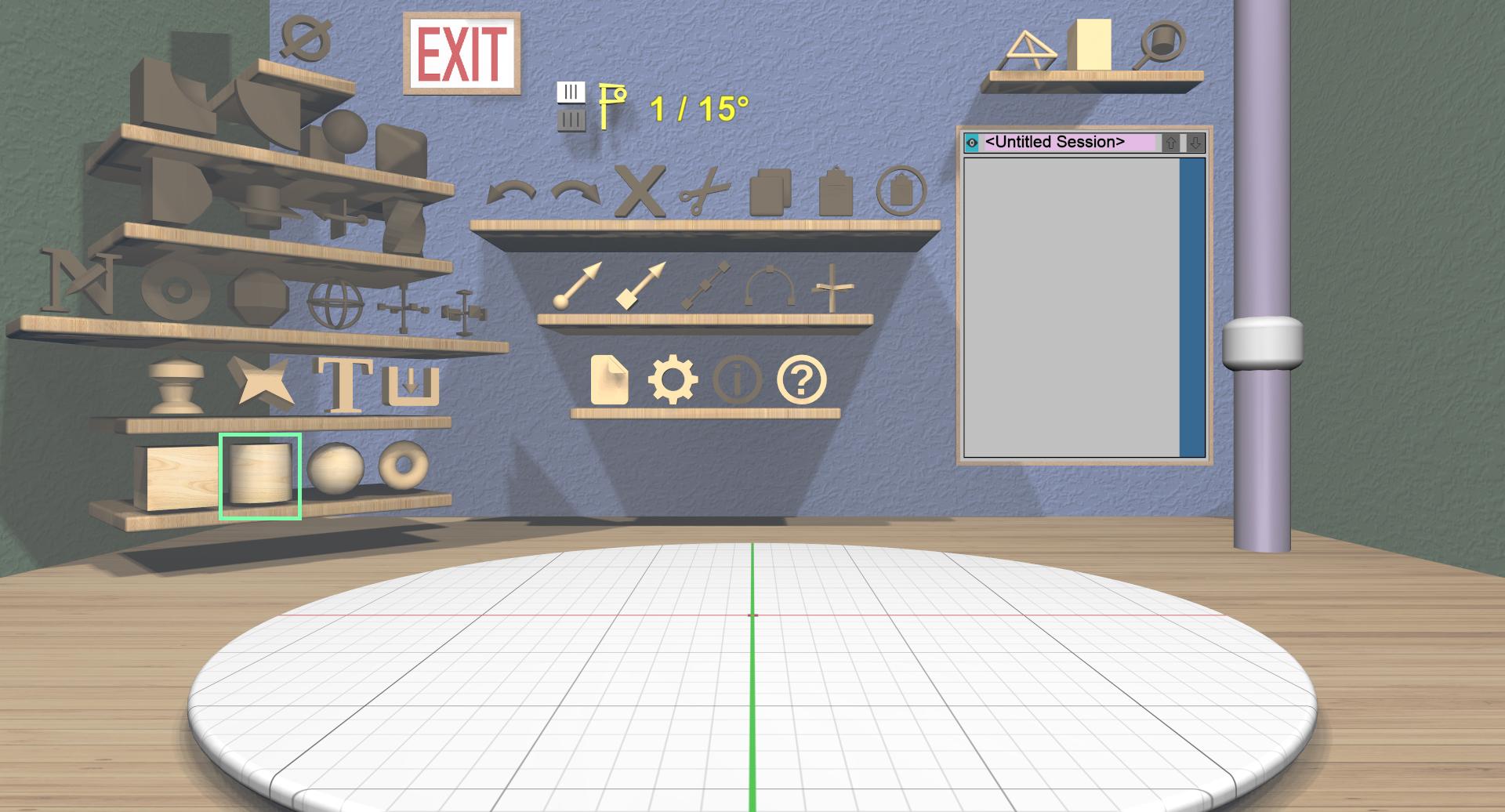 Click on the 3D cylinder icon on the bottom-left shelf to add a cylinder. Like the torus, the cylinder has specialized handles for changing the top and bottom diameters, but you won’t need them right now.