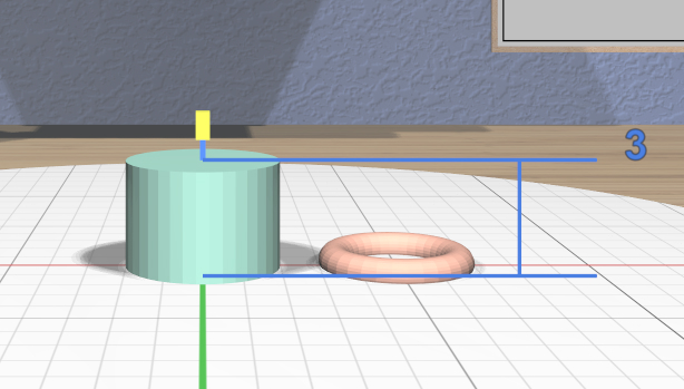 Drag the top (green) scaler down until the height of the cylinder is 3 units.