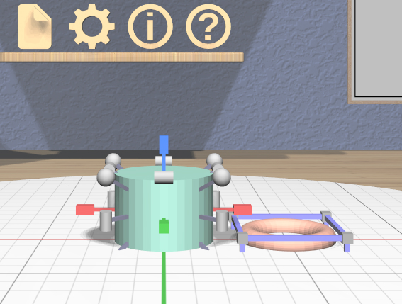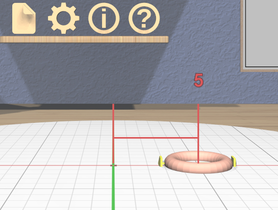 Click on the 3D torus icon on the bottom-left shelf to drop a new torus model into the scene. The torus will have some interactive handles attached to it that you can use to change the sizes of the outer and inner diameters. You can leave them at their default sizes for this example. If you change them and want to undo your changes, you can click on the 3D undo icon on the top shelf on the back wall or use Ctrl-Z.