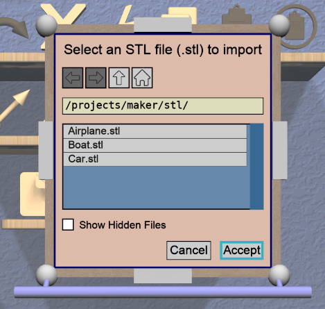 The Import Tool displays a Import Tool Panel above the selected model. Accepting the same file for an Imported model will re-import the data. Choosing a different file will load the data from that file. Any errors during data import will be displayed in a Dialog Panel.