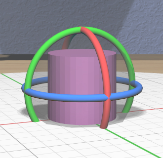 If a ring is hovered, grip dragging by rotating the controller parallel to the ring rotates the model(s) in the same direction. When no ring is selected, grip dragging will rotate the model(s) by the free controller orientation.