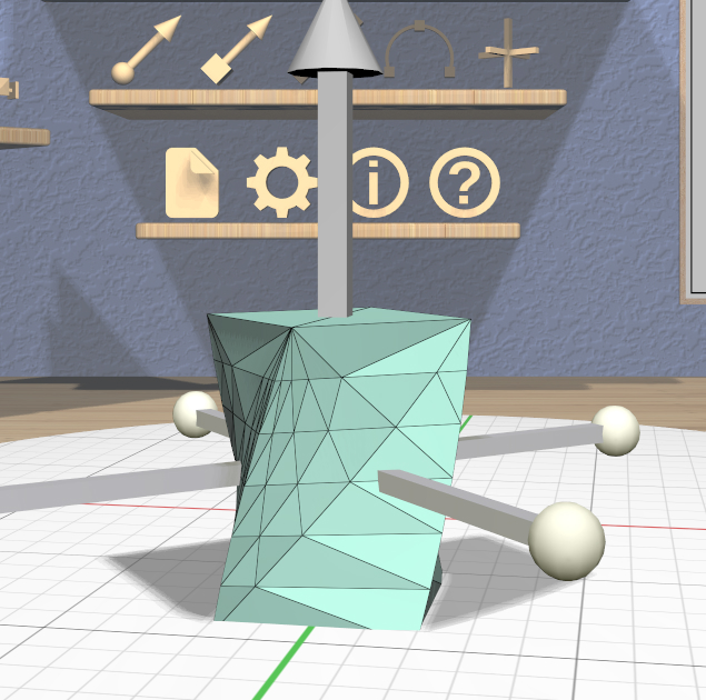 The specialized Twist Tool allows you to twist the vertices of a model around an axis. It is enabled when all of the selected models are Twisted models. You can convert any model to a Twisted model with the Convert Twist action.